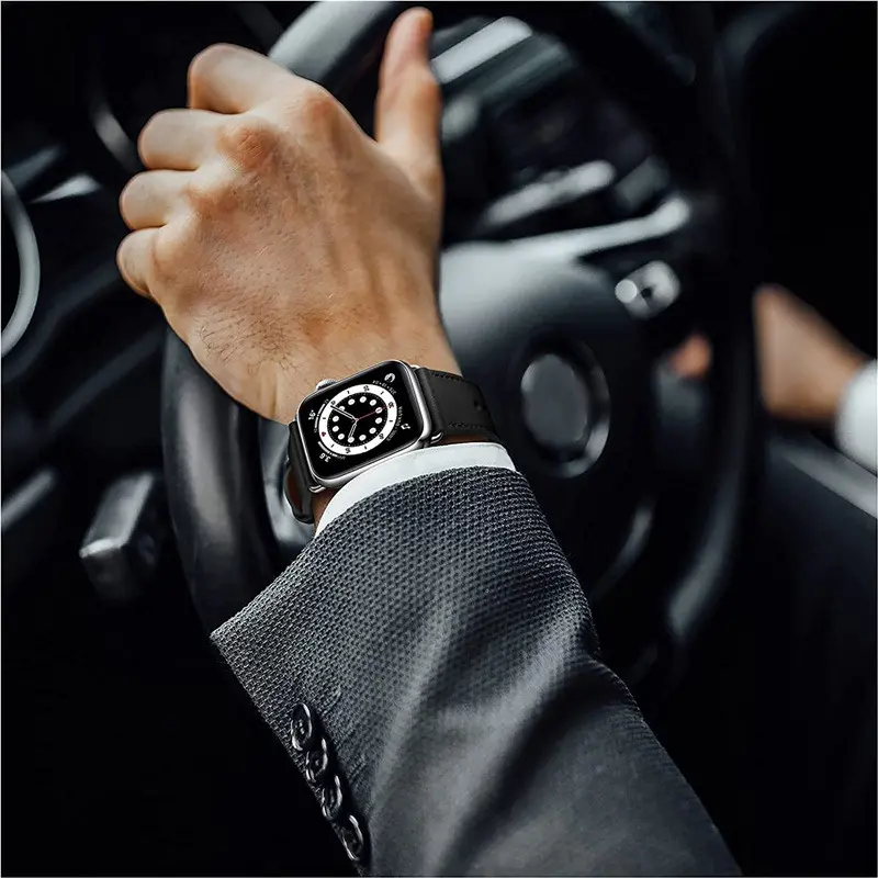 apple watch magnetic leather band Black