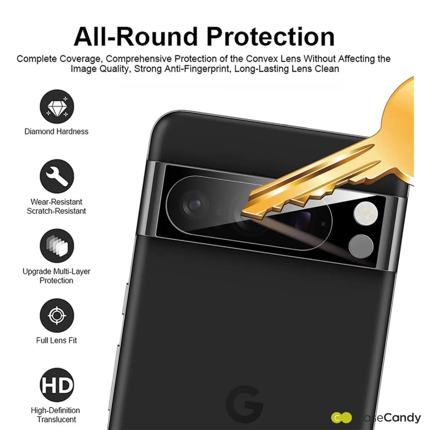 CaseCandy guarantees that your original camera will always perform as well as it did before. Our camera lens glass protector is carefully crafted to preserve the exceptional image quality of the Pixel 8.