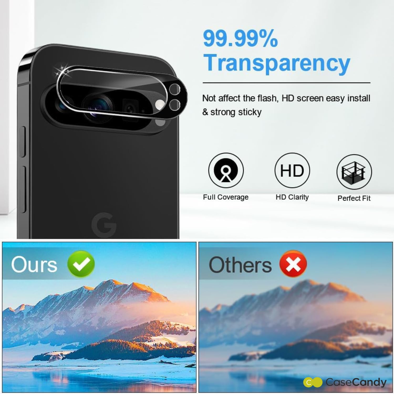 • When you choose CaseCandy, you’ll never have to compromise on your original camera’s performance. Our camera lens glass protector is meticulously crafted to maintain the highest level of image quality, preserving the stunning photography capabilities of the Pixel 9 Pro XL